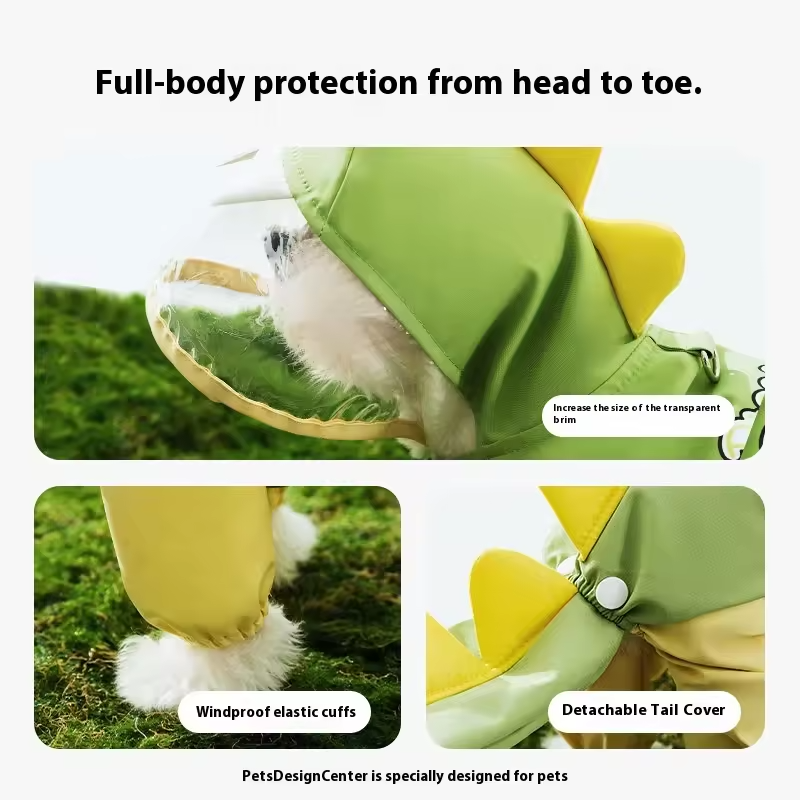 G #NEW Jacket Jumpsuit Reflective Dog Raincoat Waterproof Large Dinosaur Shape Large Dog Raincoat for Dogs